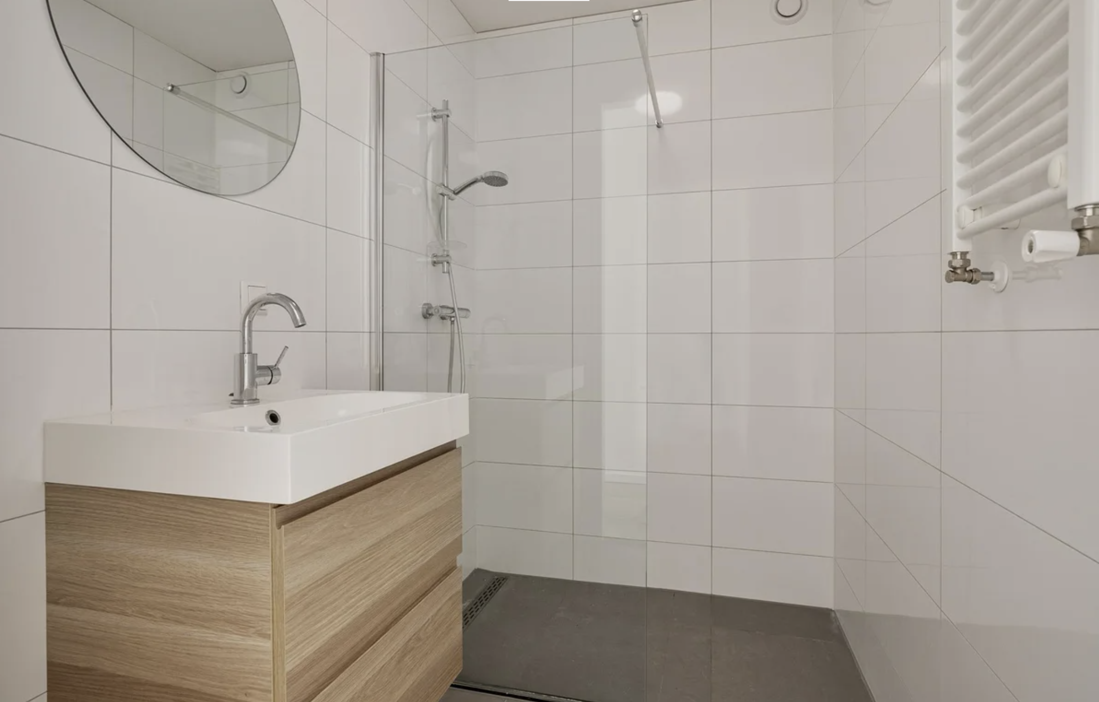 - Badkamer met inloopdouche en wastafelmeubel;