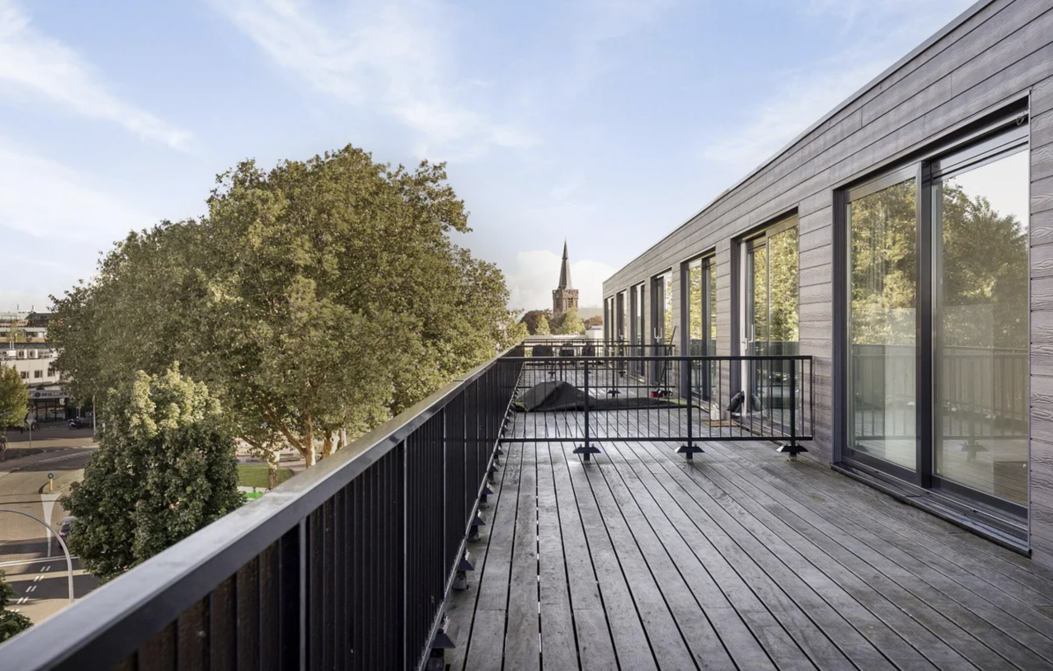 - Dakterras over de gehele breedte van de woning met ligging op west-noord-west.