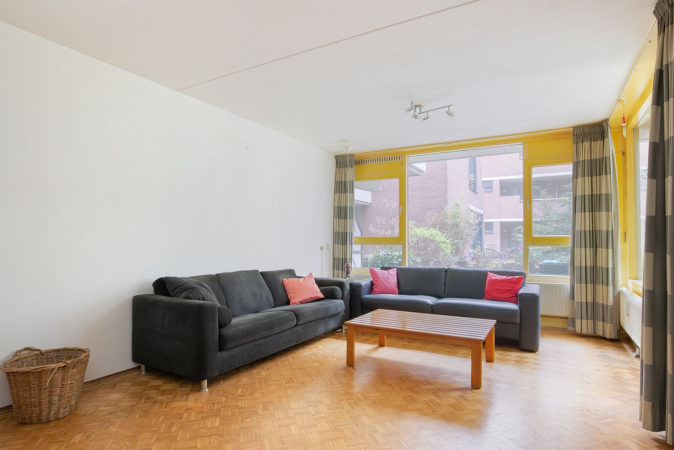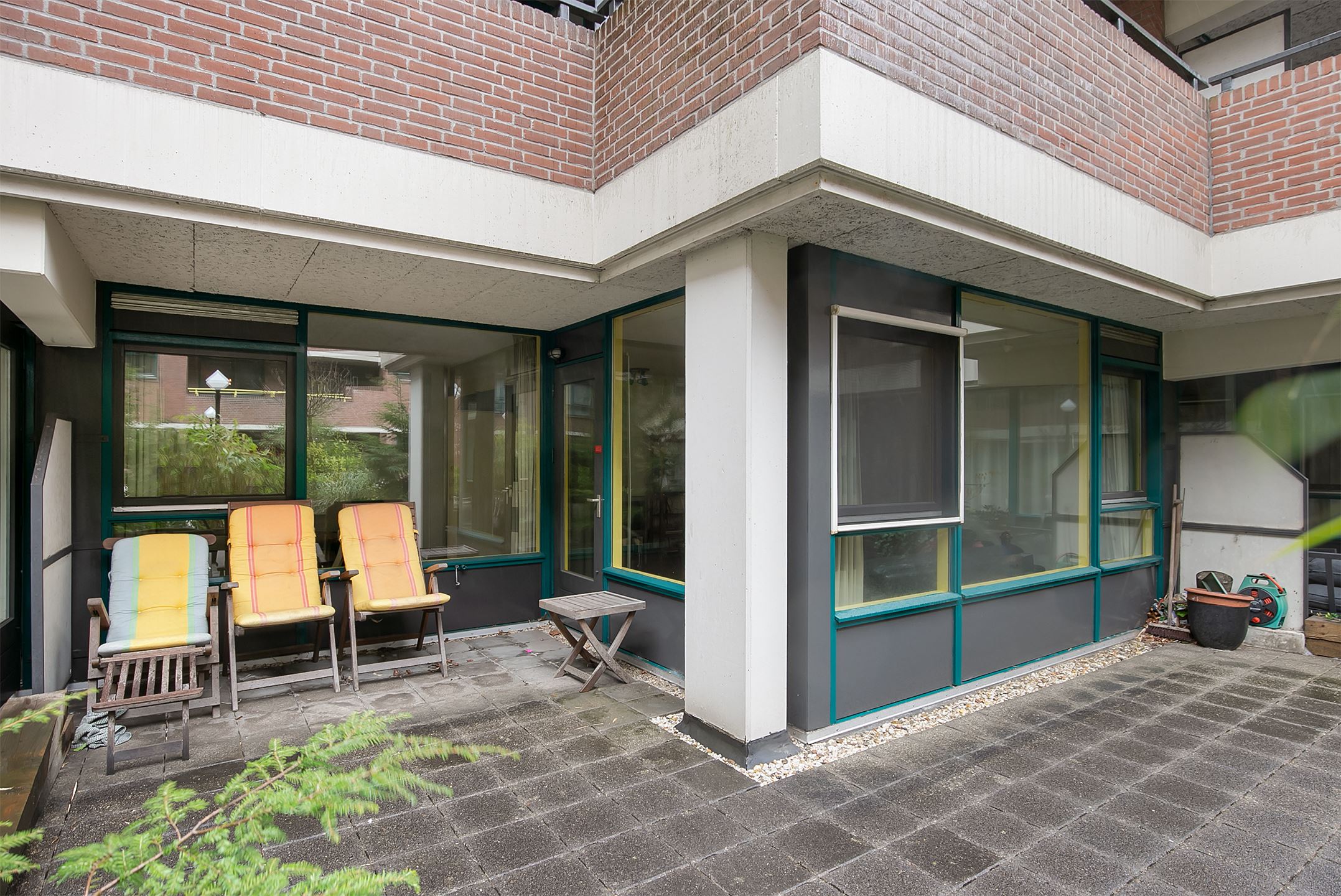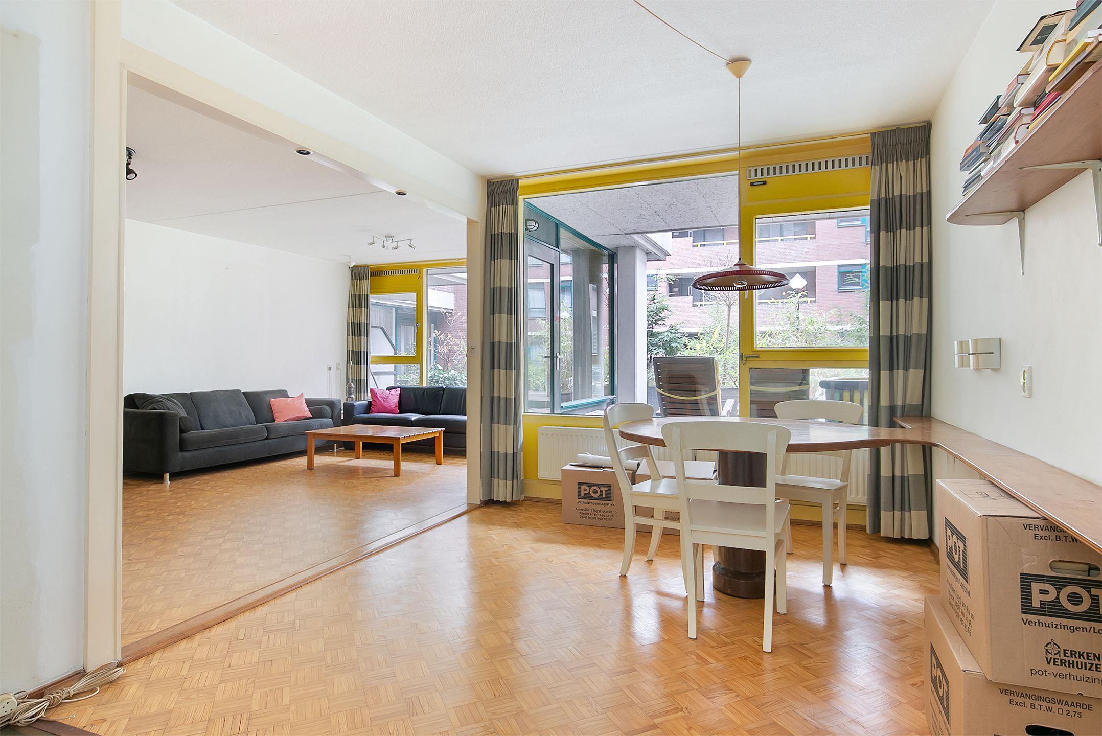 - Riante woonkamer (voorheen slaapkamer, eenvoudig te herstellen), toegang tot het terras (ca. 18 m²) grenzend aan afgesloten binnenplaats / -terrein.