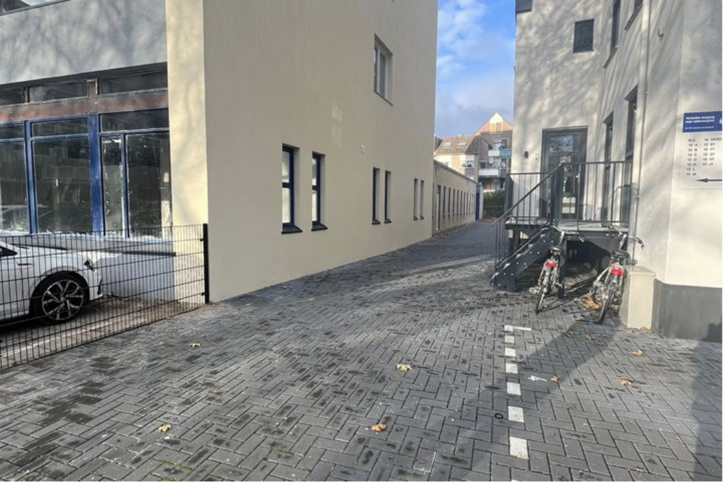 - Duidelijke afbakening eigen terrein inclusief parkeerplaatsbelijningen voor 7 parkeerplaatsen;