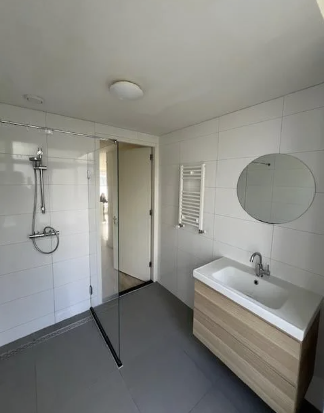 - Voorzieningen badkamer: douche, wastafel en toilet.