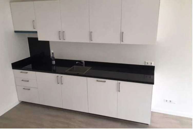 - Het appartement heeft een ruime woonkamer voorzien van een open keuken met vaatwasser, kookplaat, afzuigkap en koelkast.