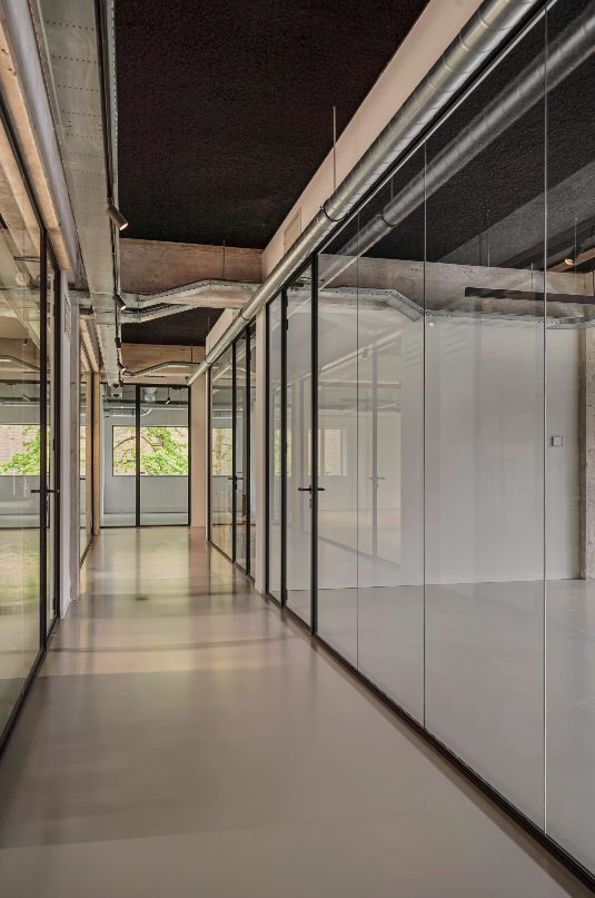 De eerste verdieping (354 m² v.v.o.) beschikt over 4 nieuwe kantoren met diverse oppervlaktes, welke zich ideaal lenen voor start/scale-ups en (innovatieve) ondernemers. De moderne ruimtes zijn voorzien van hoge plafonds en glazen wanden, welke het ruimtelijk gevoel versterkt. De huidige beleving wordt aangevuld met een warme inrichting en een combinatie met groene wanden, om zo een dynamische en inspirerende omgeving te bieden. Het gebouw zelf beschikt over 3 verdiepingen met meerdere ondernemers, waarbij samenwerken met gelijkgestemden centraal staat.